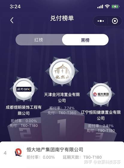 如此一看,恒大是「资可抵债」,但集团有息负债约5,720亿元,约2,400亿元债务将于1年内到期,据数票科技票三方官方<票眼>小程序数据显示:恒大商票目前已超百亿拒付数据,且已上市场拒付黑榜前三;