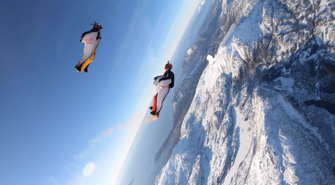 2019年4月15日在挪威境内北极地区上空拍摄《极境传说》翼装飞行