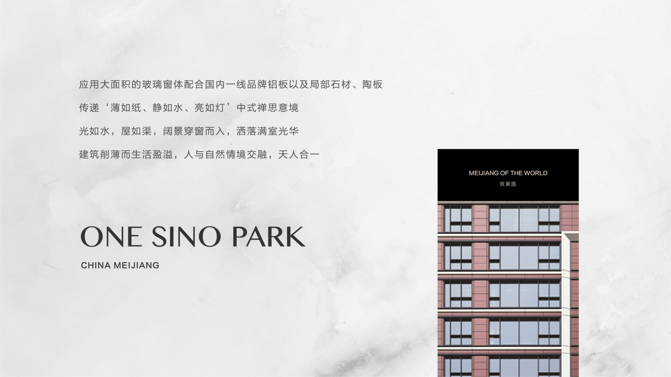“薄如纸、静如水、亮如灯”是梅江壹号院的整体设计理念,主要体现中国宅院围合的传统居住理念,并配以后现代元素,重金打造天津市最好的社区园林设计和最佳楼座配比。梅江壹号院一期包括3栋24层到顶的高层和10栋15层、1栋13层、1栋14层至顶的小高组成,不做高低配,同时二期以7层到顶洋房产品为主,让业主享受最好的景观视野、舒服的楼间距和采光。
