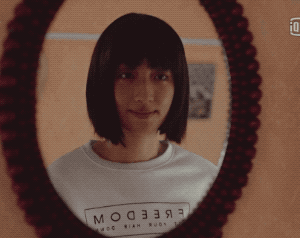 试图扮演黄雨萱的陈韵如,努力模仿黄雨萱的样子,对着镜子挤出的那个“黄雨萱式微笑”,看着人浑身发毛。