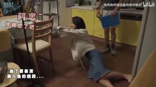 在《想见你》片场,有一场戏她坐在地上,姿势很婉约,工作人员问她“你是美人鱼吗?”