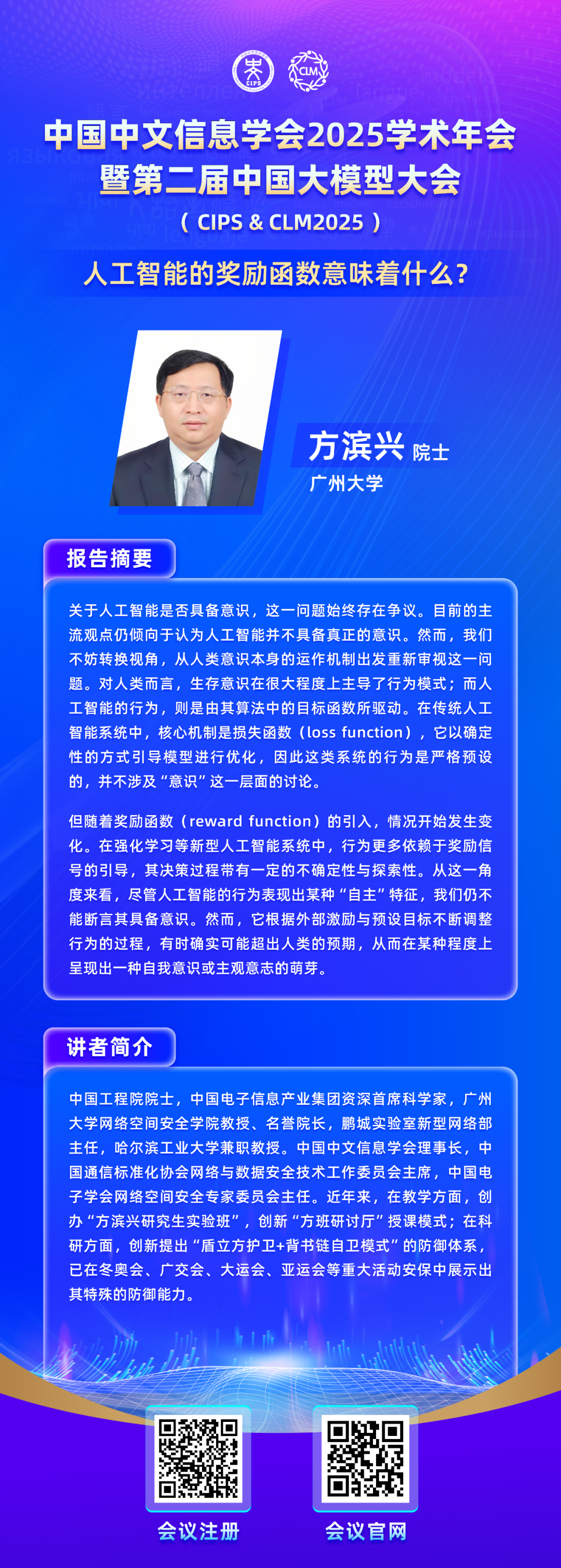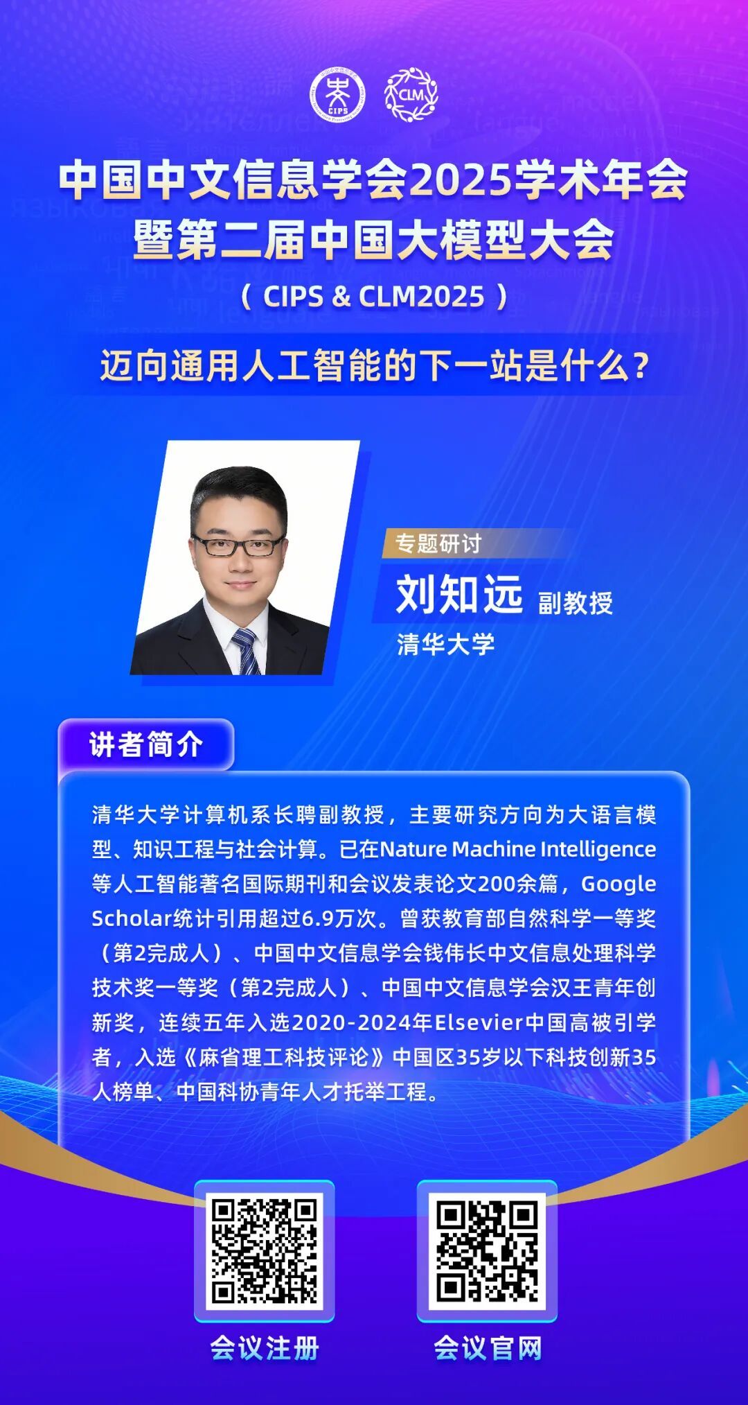 承前启后,再启新程!中国中文信息学会2025学术年会暨第二届中国大模型大会(CIPS & CLM 2025)将于2025年10月28日-29日在北京举行。本届大会将延续首届会议的精神内核,聚焦大模型的理论突破、技术前沿、产业落地与生态共建,致力于打造更具技术深度与行业影响力的AI盛会。