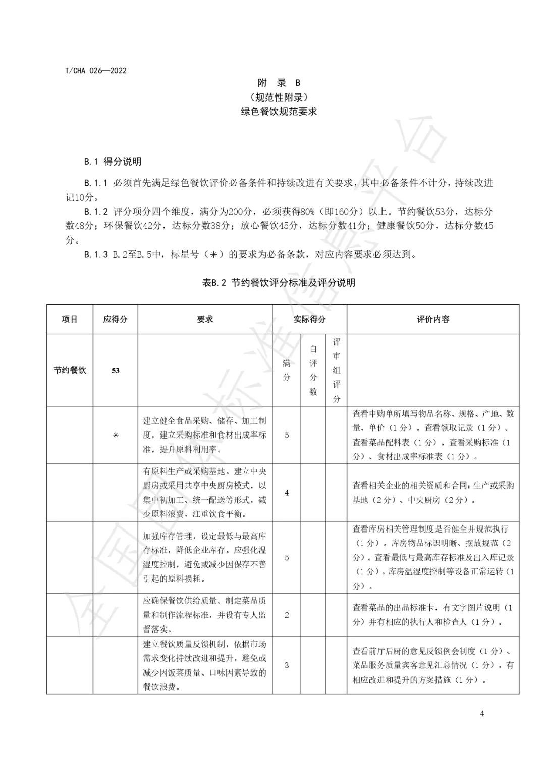 例如,在节约餐饮评价标准中,有“建立健全食品采购、储存、加工制度,建立采购标准和食材出成率标准,提升原料利用率”的要求。