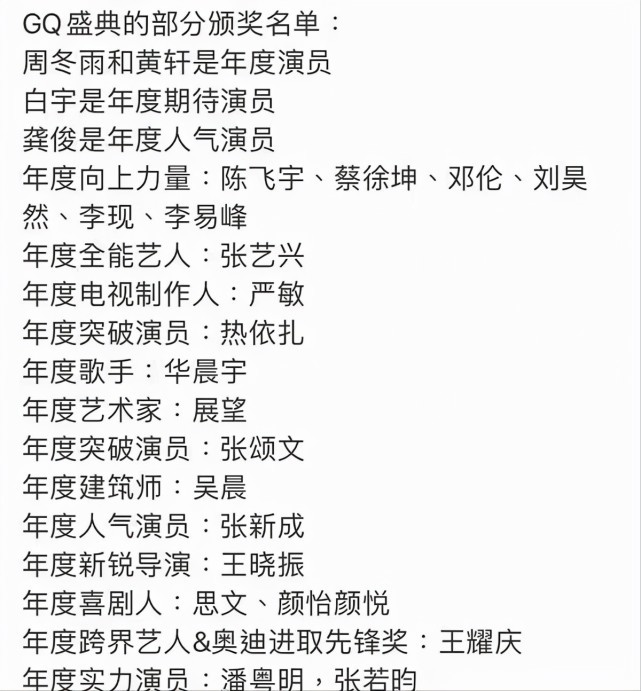 GQ盛典颁奖名单被曝光,黄轩周冬雨均在榜上,思文出现让人意外——引言。