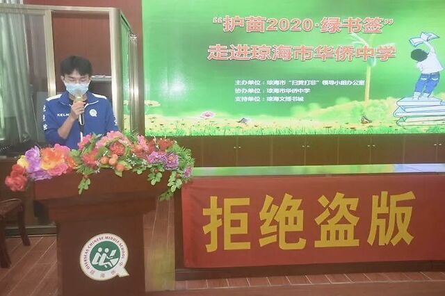 为保护未成年人健康茁壮成长,进一步增强学校师生的版权保护意识,使学生养成绿色阅读和文明上网的行为习惯,打击侵权盗版,拒绝有害出版物及信息,营造良好的社会文化环境,4月30日上午,琼海市“扫黄打非”领导小组办公室组织“护苗2020·绿书签”活动走进琼海市华侨中学。中共琼海市委宣传部副部长、市新闻出版(版权)局局长何韩冲,中原镇宣传委员黄彪、市华侨中学校长韩众出席活动,市文博书城总经理陈奕浩作为嘉宾与华侨中学师生代表参加了本次活动。