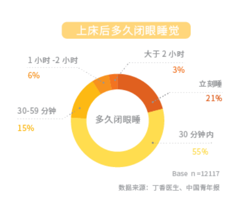 丰富的社交生活和各种电子产品或许是他们早睡的最大障碍。在大学生眼里,上床从来不等于睡觉,大学生们会利用这段时间进行丰富的娱乐活动,看剧、聊天、刷社交应用,一旦玩起手机,再想睡觉可能已是两小时之后。68% 的大学生在23点到24点之间入睡,有18%的大学生在24点以后入睡。