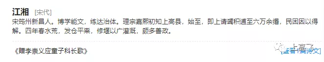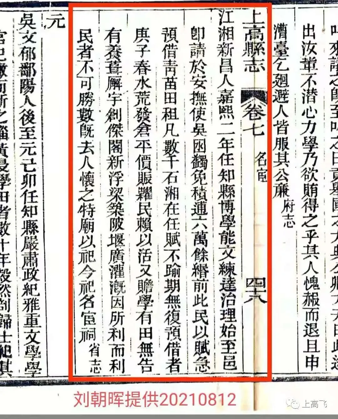 在《上高县志(七卷名宦)》中有记载《名宦.江湘记》,它的事迹已被《省志》收录。如下:
