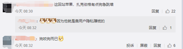 大多数人都支持苹果保护用户隐私,认为 Facebook 只是站在自己的利益角度为自己发声。