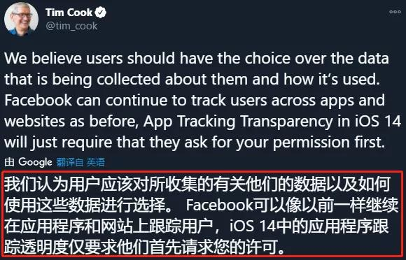 而苹果也很强硬,称新规则不会要求 Facebook 改变其“追踪用户并创造定向广告的方式”,而是要求 Facebook 在苹果设备上给用户一个选择,是否允许这些行为。