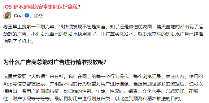 知乎网友@ Coa 还在知乎问题“iOS 是不是能比安卓更能保护隐私”中列出了这些年来苹果在隐私保护上做的努力: