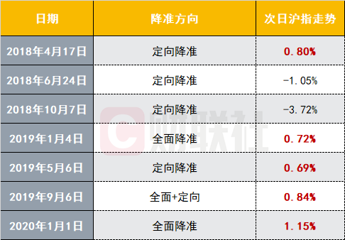 从2018年以来央行历次降准后A股走势来看,降准实施后,上证综指次日整体上涨概率超70%,涨幅大致介于0.7%-0.85%之间,仅有一次超过1%,而两次下跌跌幅均超过1%。