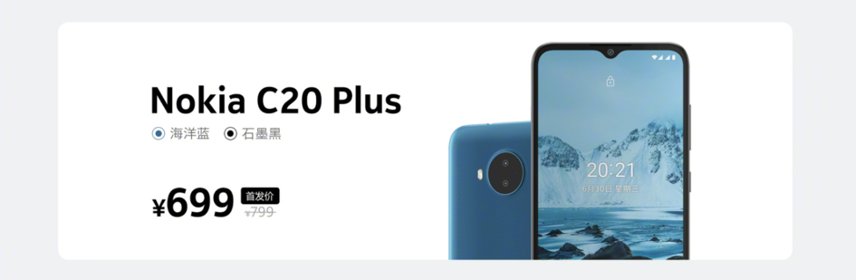据悉,诺基亚 C20 Plus 3+32GB 首发价格为 699 元,现已开启预售。
