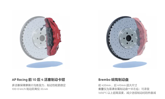 当然,在性能方面,极氪001 FR还有着比肩超跑的硬件配置。新车将配备AR Racing 10活塞制动卡钳、Brembo碳陶制动盘、KW高性能绞牙避震器、碳纤维风刀以及高性能半热熔轮胎。