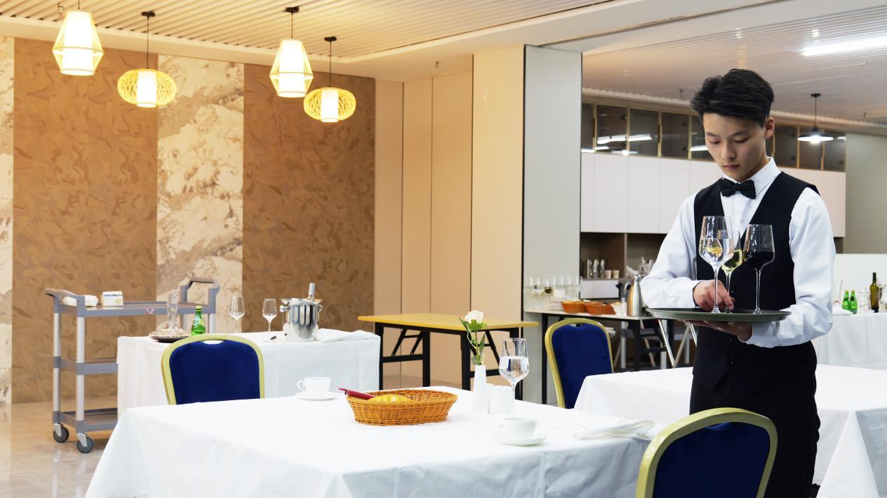 本次赛项以“对标国际标准、突出中国特色、衔接行业需求、融入岗位场景”为宗旨,严格参照世界技能大赛酒店服务赛项框架,设置前厅接待、中餐服务、西餐服务三个考核模块,全面检验选手的职业素养、技能精度与应急处置能力。为确保评判的专业性与权威性,赛事组建了由14名专家构成的顶尖裁判组,这些裁判均多次执裁世界职业院校技能大赛旅游赛道和全国职业院校技能大赛酒店服务赛项。这一“顶配”裁判阵容的搭建,离不开青岛酒店管理职院的跨区域协调与资源对接。赛前,青岛团队协调全国知名裁判专家提前进驻喀什职业技术学院开展专项指导,为新疆的参赛师生带来了“国家级”的精准赋能。喀什职业技术学院文化与旅游学院作为承办方,在托管帮扶团队和专家组的指导下,制定了周密的筹备方案,实现了“零投诉、零失误”的赛事保障目标,为选手营造了公平竞技的专业环境。