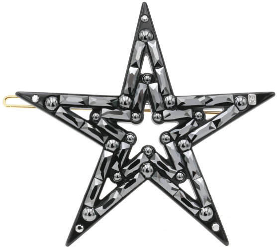而本季夜星系列,堪称星型发饰中的佼佼者。纯粹完美的五星廓形,层叠排列的闪亮质感,再和黑金两种永不过时的颜色完美相融,简直天作之合。别在耳间,犹如摘星般美妙。