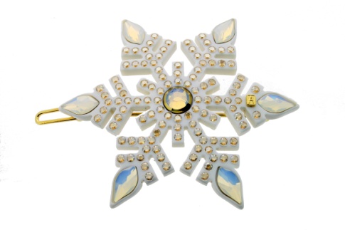 Alexandre de Paris还匠心独具的设计了北极星系列,它用六瓣雪花的造型突破性地打造六角星的概念,红白黑各色相得益彰,而其上大小完美搭配的施华洛世奇水晶更是让它在阳光下呈现出炫目的北极光。