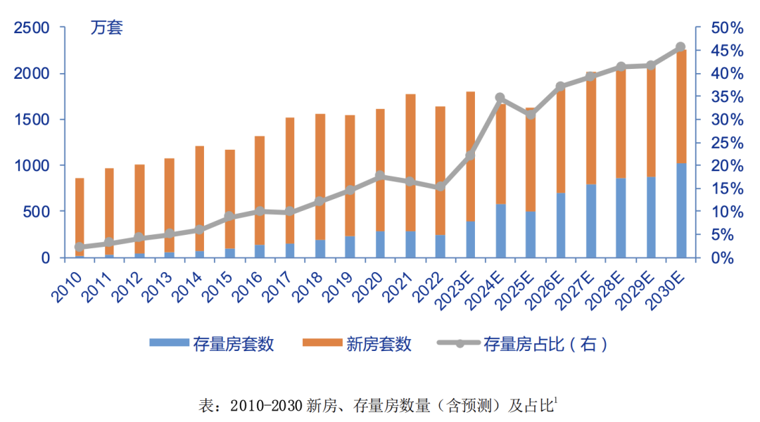据申万宏源证券研究所报告显示,预计2030年存量约1028万套,占消费总量约46%