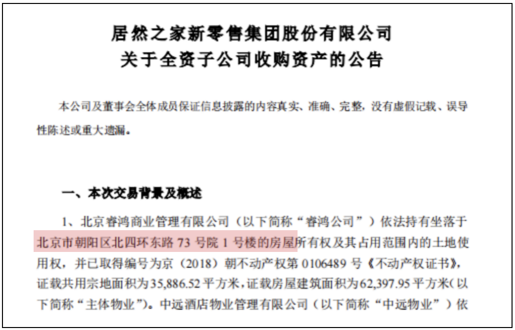 就在5月29日,居然之家拟19.63亿元收购位于北京市朝阳区一处房屋使用权