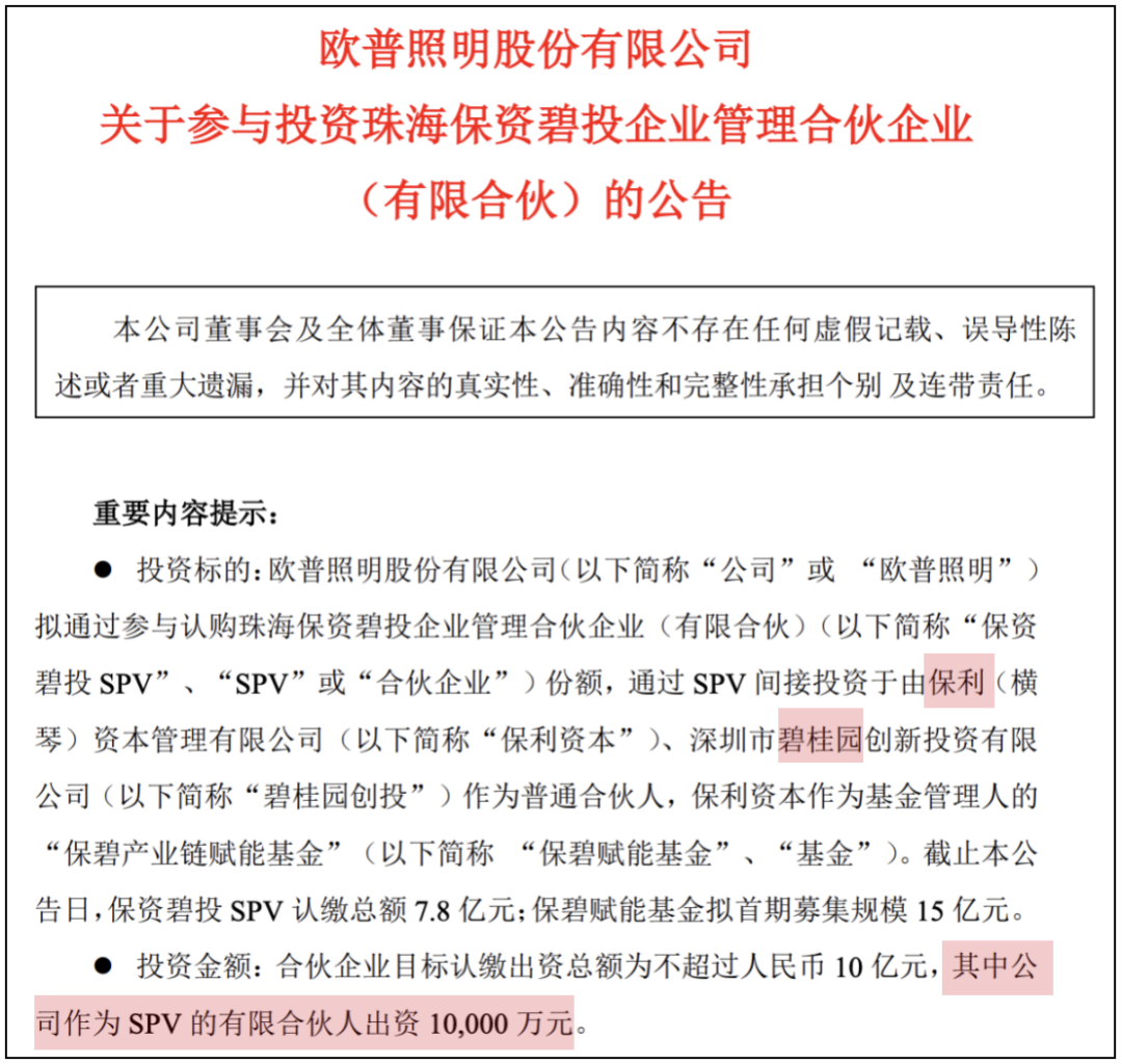 家居品牌皮阿诺、东方雨虹、欧普照明曾相继发布公告,投资参与认购与保利资本、碧桂园有关的珠海保资碧投企业管理合伙企业(有限合伙)