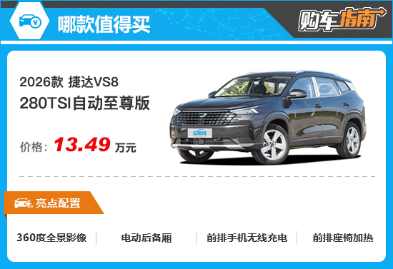 因此综合来看,如果您正在关注2026款捷达VS8,那么280TSI自动至尊版值得您优先考虑。