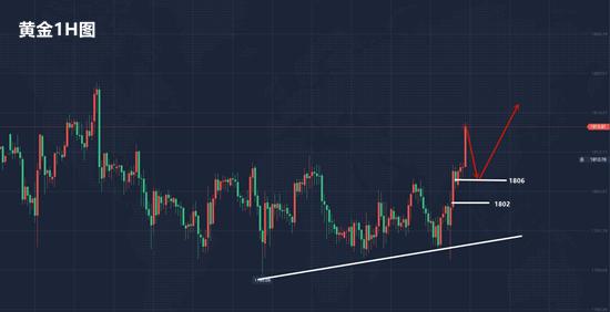 黄金策略:1806直接多,止损1798,目标看1815,1820。