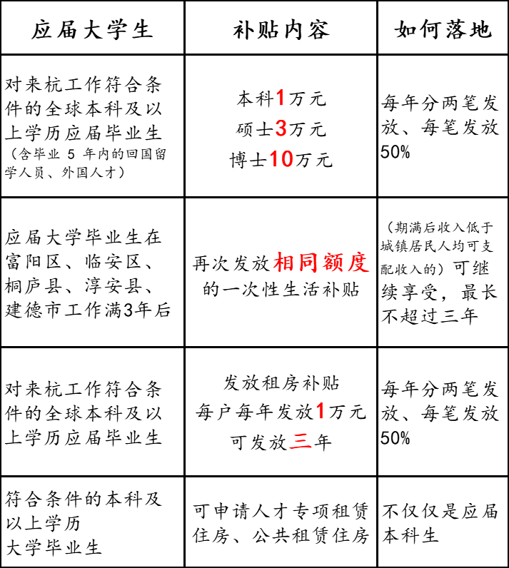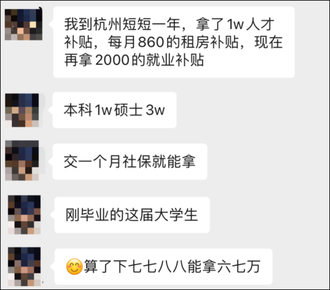 首先,但凡应届毕业生,来到杭州他们就会有一笔生活补贴