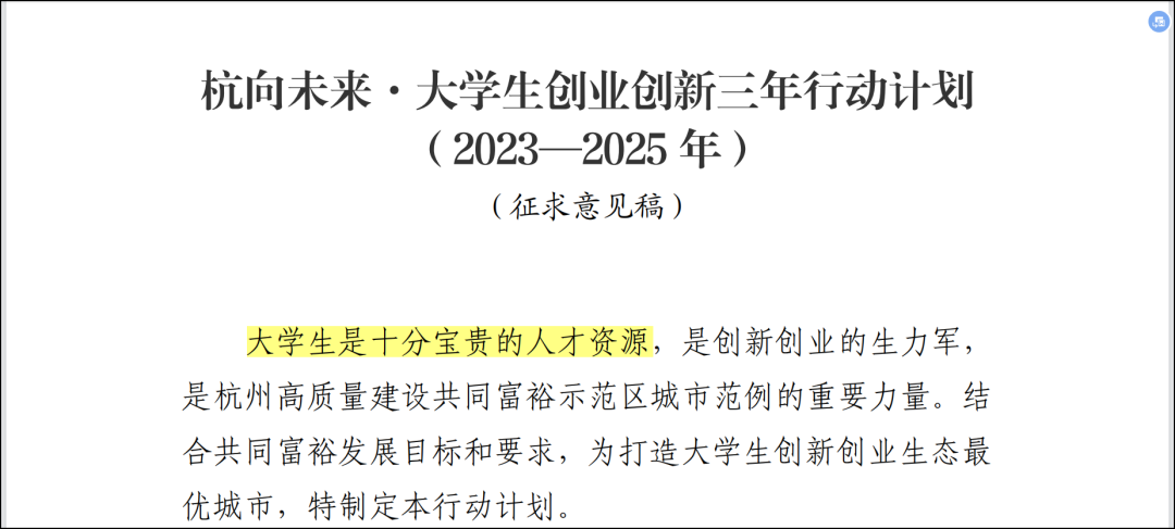 ➤ 《杭向未来·大学生创业创新三年行动计划(2020-2022年)》
