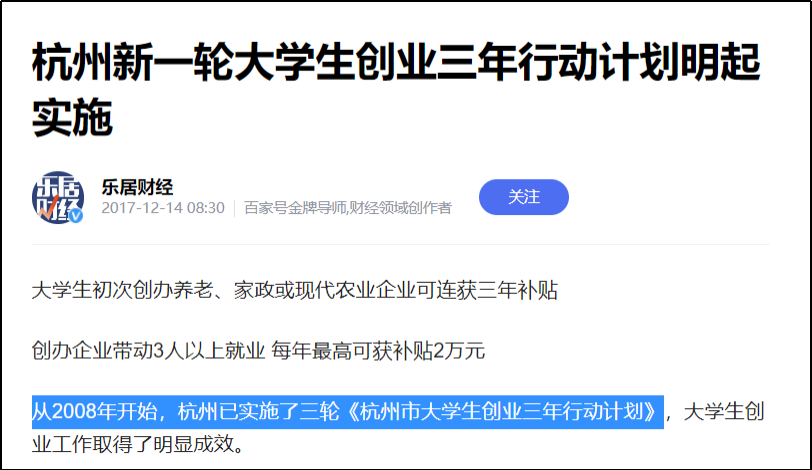 最开始的时候是从2008年时候就发起了,也叫《杭州市大学生创业三年行动计划》
