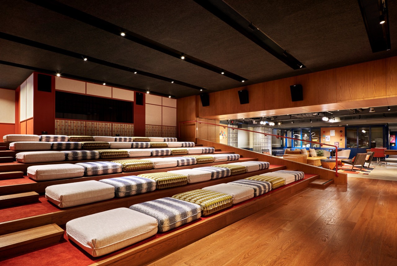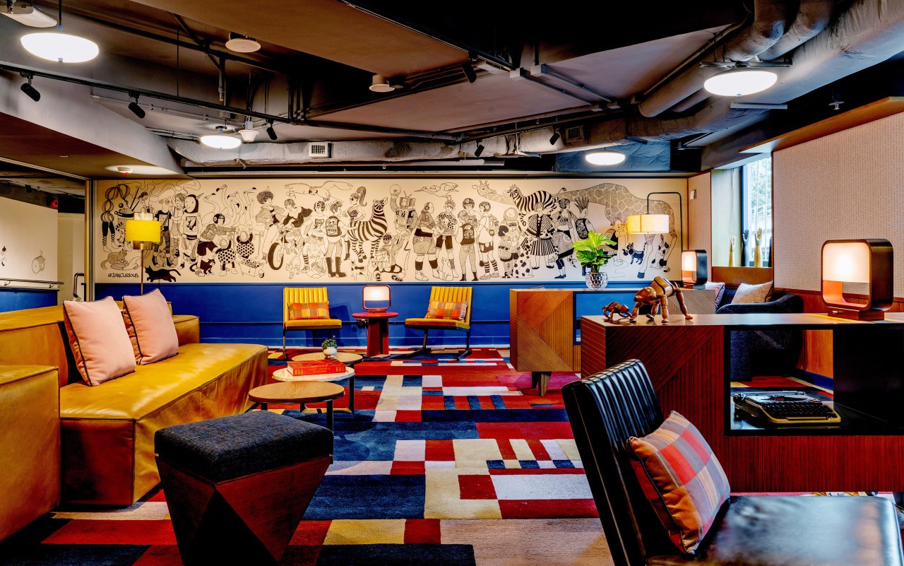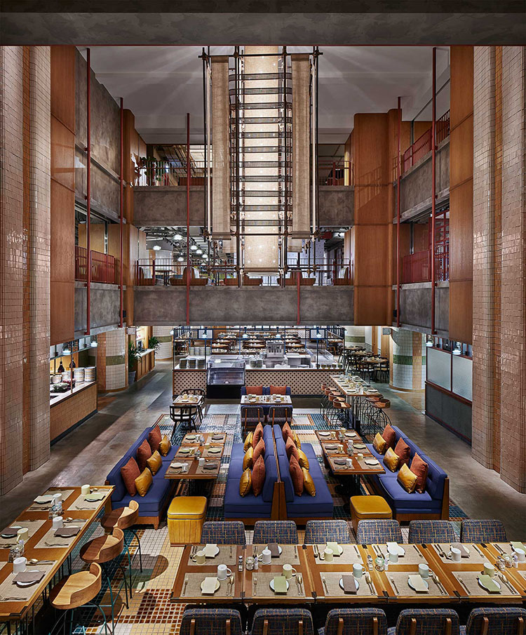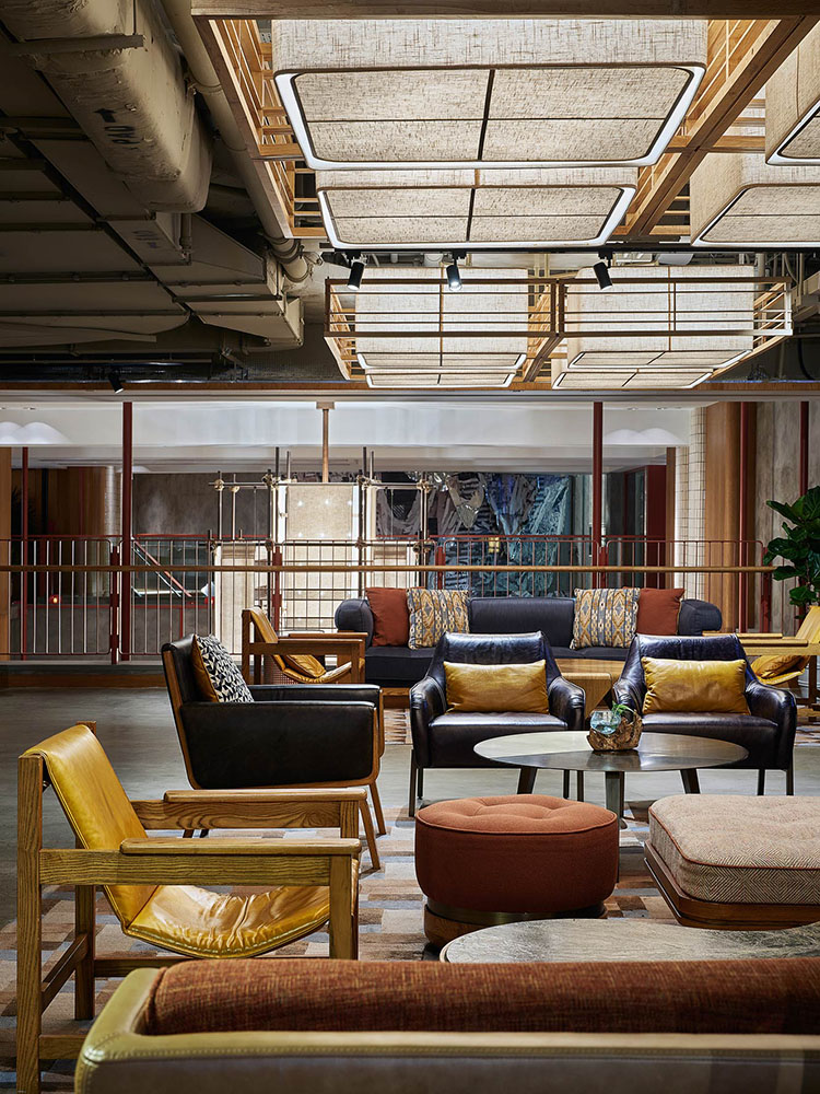 巨大的中庭吸引了客人进入,让他们看到了多样的生态系统。15英尺高的枝形吊灯由多层亚麻布和穿孔钢打造,在柱子上投射出梦幻般的图案。一个不规则的食品大厅占据了两层,而休闲的Astor餐厅位于较低的楼层。餐厅里铺满了像茶餐厅一样的瓷砖。室外露台是鸡尾酒吧Terrible Baby的所在地,覆盖着木材和装饰性金属制品。而地下室是米其林星级的粤菜餐厅逸东轩(Yat Tung Heen),提供了该地区最好的风味。联合工作空间毗邻剧院和乐队室可用于表演,练习,和录音。