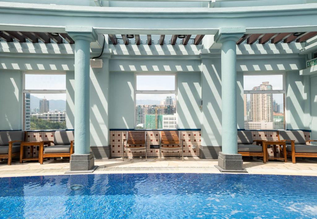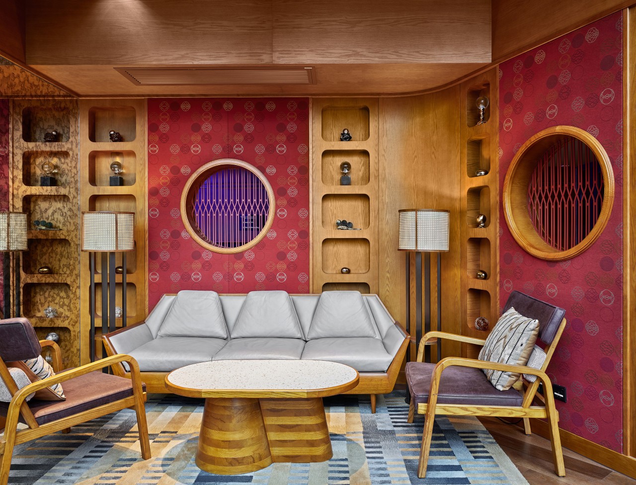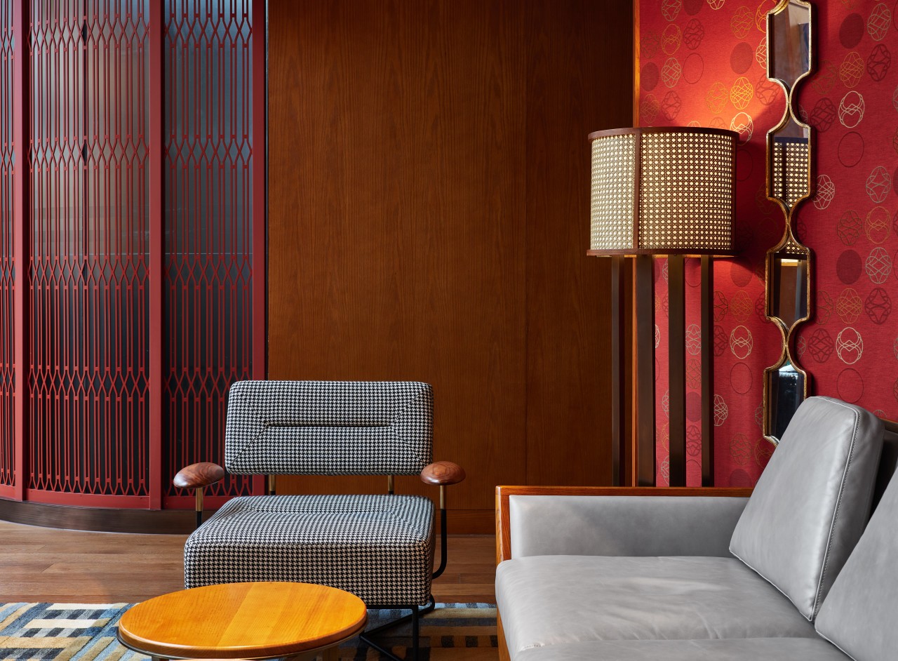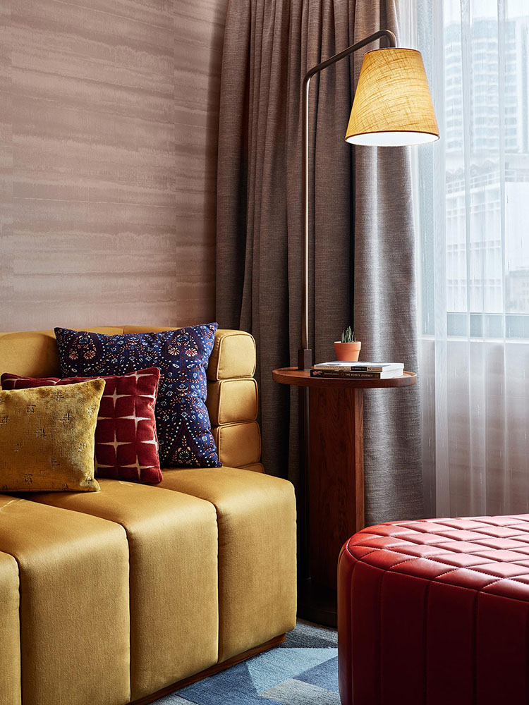 团队从九龙佐敦的周边社区中提炼元素。贯穿整个酒店的是朱红色的金属制品,高对比度的水磨石和大颗粒的骨料,霓虹灯和色彩丰富且变化多端的瓷砖。红色粉末涂层的钢制细节可以追溯到当地的市政建筑。定制照明使用亚麻和钢之类的普通材料,其细节设计灵感来自当地随处可见的竹子脚手架。尽管是向传统致敬,但流线型,时尚且现代的家具使整体氛围坚定地面向未来。