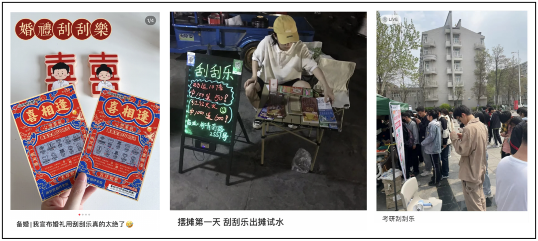 从每天下班买刮刮乐,到婚礼上新郎新娘一起刮,摆地摊刮刮乐,甚至考研前也得来几张刮刮乐