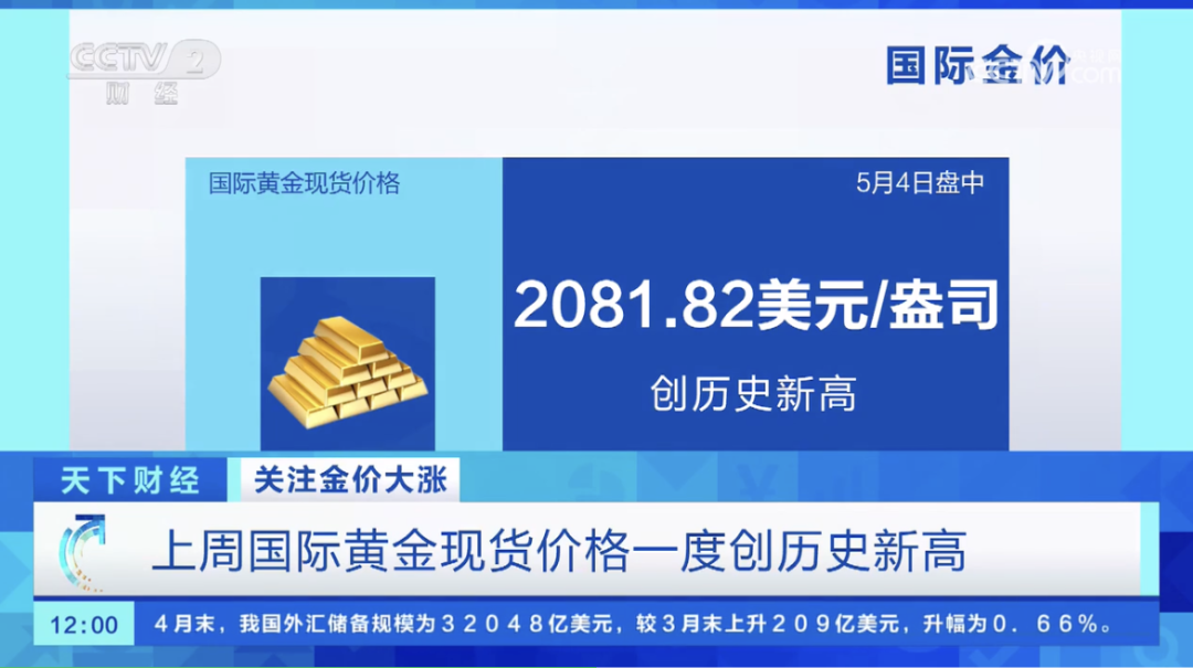 就在不久前的5月4日,COMEX黄金价格盘中触及最高点2085.4美元/盎司,国际黄金现货价格也在同日一度站上2080美元/盎司上方,创下历史新高