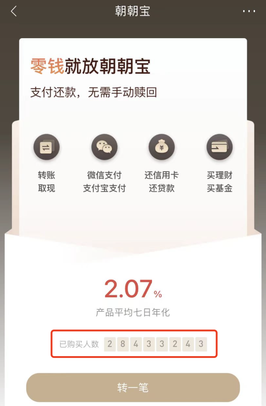 就好比2020年招商推出的爆款理财产品朝朝宝,其中超过1/4的客户总量,都是18岁-27岁的年轻客户,眼见着如今的用户人数就要突破3000万大关了