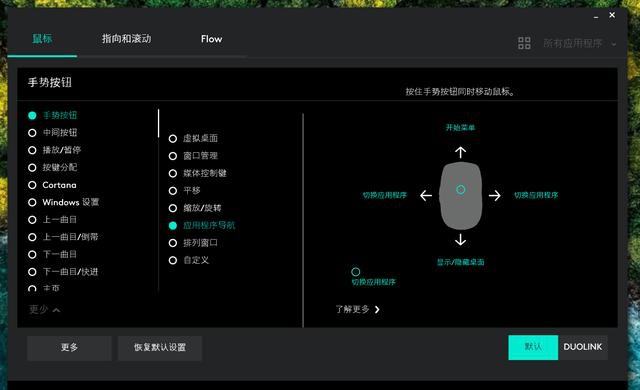 如果你也有支持Flow功能的罗技键盘的话,还可以通过DUOLINK功能来实现更多的操控。主要原理就是通过键盘的Fn搭配鼠标的手势操作、鼠标按键实现更多的组合键功能。可以说罗技对于用户体验以及高效办公上面是花了非常多的心思的。这样的体验也让我在外设选择上会更偏向罗技的产品。