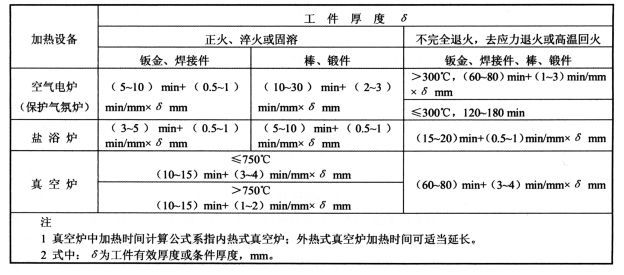 表8-1不锈钢加热保温时间计算表(工件的有效尺寸的选择可以按照结构钢)。