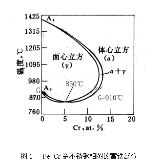 (1)Cr13型不锈钢:从相图(图8-1)中可以看到,Cr≥12%的合金即具有不锈钢的性能又能淬火强化。奥氏体化组织中存在铁素体组织,淬火之后保留下来, Cr含量太高,加热就会形成单相铁素体,就不能淬火强化处理。