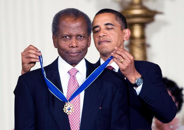 2009年,奥巴马授予波蒂埃总统自由勋章2002年,西德尼·波蒂埃获颁奥斯卡终身成就奖。而那年的奥斯卡最佳男女主角奖,也分别授予了《训练日》的丹泽尔·华盛顿和《死囚之舞》的哈莉·贝瑞。前者是距离波蒂埃获奖38年之后,再有黑人演员获此殊荣;后者是奥斯卡历史上首位黑人最佳女主角奖得主。从丹泽尔·华盛顿手中接过人生第二尊小金人时,波蒂埃激动地表示,“22岁那年,我初到好莱坞,那是一个与现在大不相同的时代,按照那时的标准,五十三年后的今天,我完全没有机会站在这里。”随后他感谢了曼凯维奇、克雷默等勇敢挑战传统偏见、给予他机会的前辈导演,“正是他们的努力,让我获益,让这个行业获益,让美国获益,甚至是让全世界也都从中获益”。