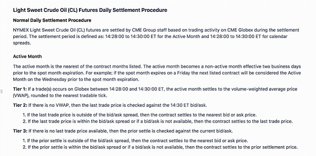 结算程序: https://www.cmegroup.com/confluence/display/EPICSANDBOX/NYMEX+Crude+Oil