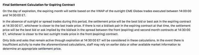 此外,CME对到期合同的最终结算计算进行严格的规定。