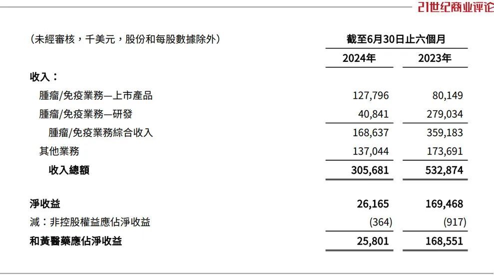 2024年上半年,和黄的肿瘤产品营收1.687亿美元,同比增长超过六成,净收益2580万美元。