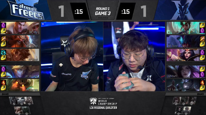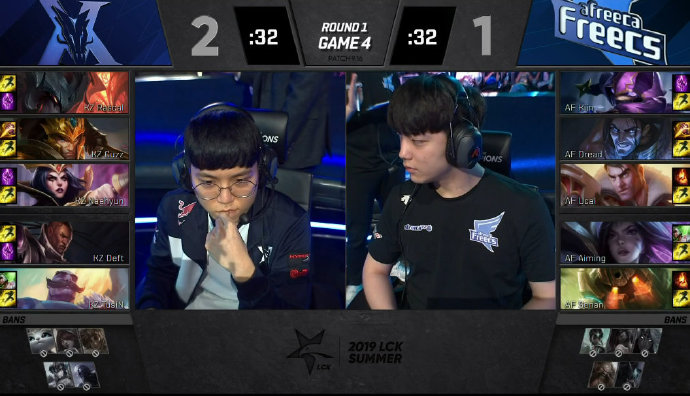 12分钟,双方下路爆发团战,KZ利用先手和人数暂时领先的优势打出一波0换4并推掉下路一血塔;