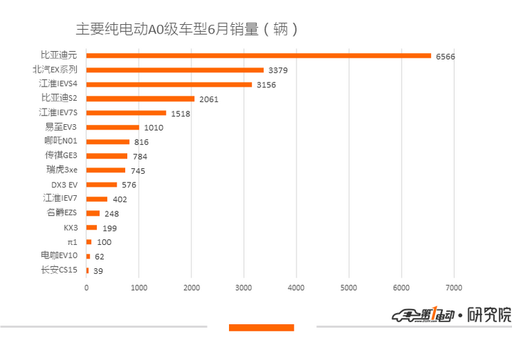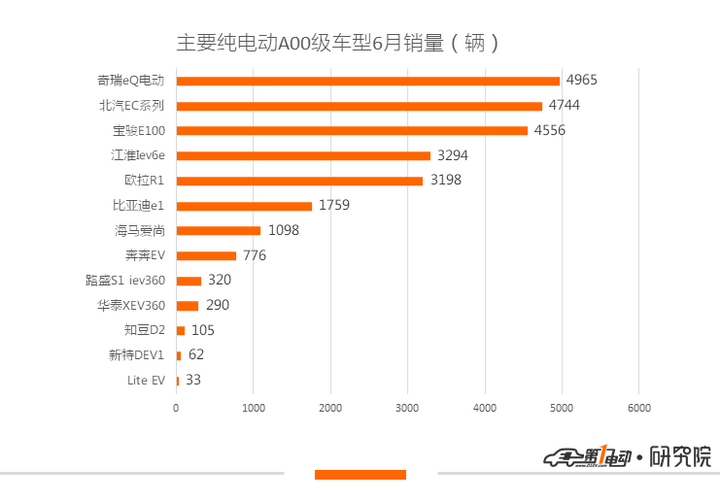 具体车型来看,6月共有7款纯电动A00级车型销量过千。其中奇瑞eQ系列以环比上涨30%的成绩排名第一,北汽EC系列从5月216辆的销量直接提升至4744辆,排名也直接来到第二位。