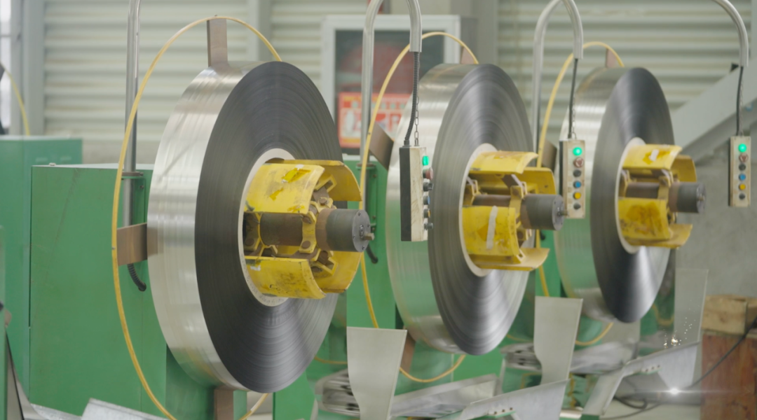 薄、脆、轻的非晶合金带材化身为3.2吨的铁芯,是一个巨大而精细的工程量。“新型软磁合金材料非晶合金的厚度仅为2丝,比成人发丝的5丝还要薄。”南宝特副总经理陈华告诉我们,“3150KVA非晶合金变压器的共有12个铁芯,每个铁芯有182组(每组30张)一共5460片非晶合金带材薄片组成,这种铁芯的剪切工艺要求非常精密,因为它在成型过程中对离缝要求比较高,离缝必须控制在2mm内。”剪切精度的工艺把控对变压器的损耗和噪音都有直接的影响,铁芯的生产工艺非常复杂且严苛,容量越大剪切和退火难度越大。从材料剪切到成品组装的一体化自主生产,南宝特的技术不可复制,这也是南宝特成长为隐形冠军的独门秘籍。