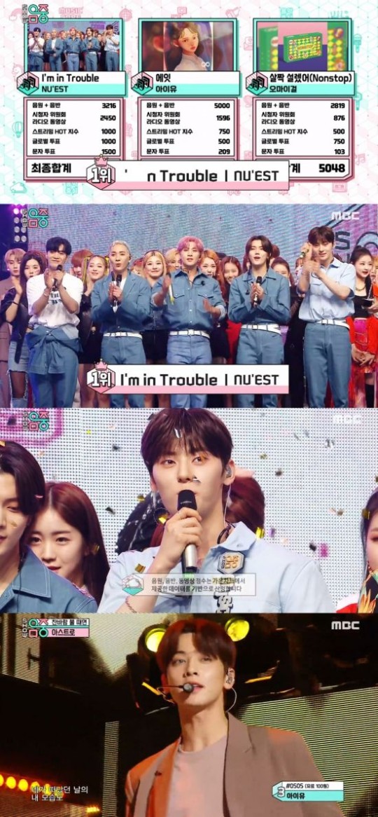 23日下午播出的MBC《Show!音乐中心》中,NU'EST以9166分摘得了一位,成为四冠王。NU'EST表示:“非常感谢大家。为了我们日以继夜辛苦工作的经纪人哥哥们、化妆师、造型师们,全都非常感谢。”还表示了对粉丝“L.O.Λ.E”的感谢。当天,NU'EST展现了收录曲《Back To Me》和主打曲《I’m in Trouble》的回归舞台。
