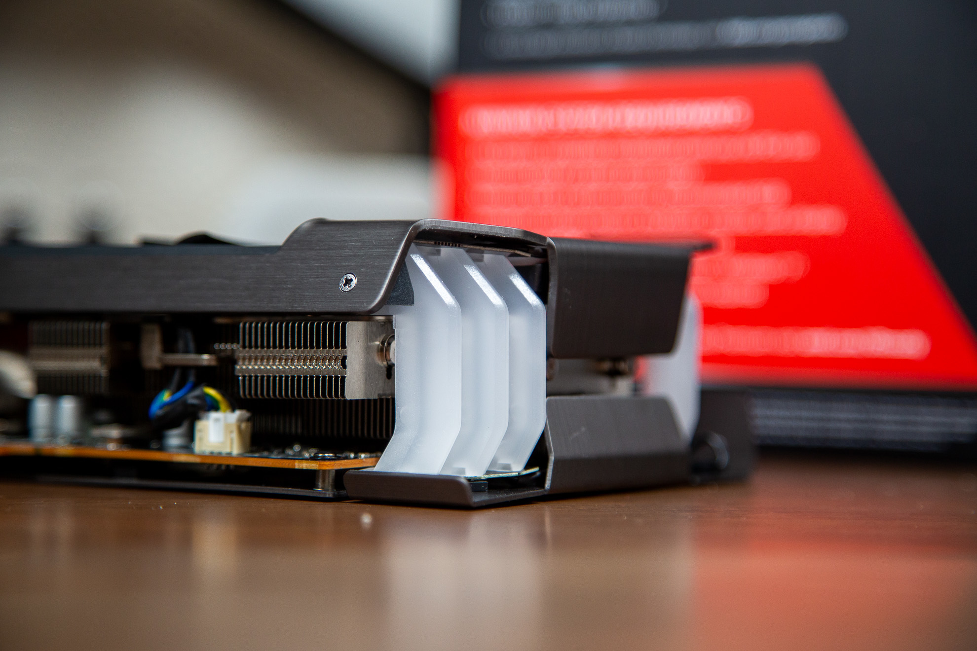 与今年的次时代主机一样,AMD显卡也开始支持光线追踪效果,显卡背面罗列了显卡的详细数据以及散热介绍。