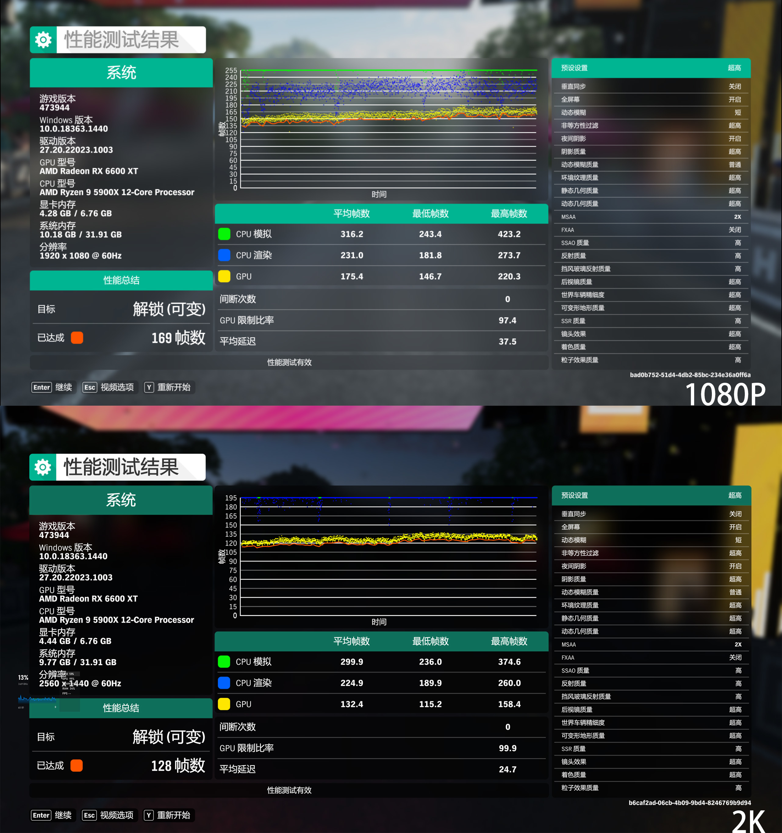 《极限竞速:地平线 4》也是一款不错得赛车游戏,本身赛车游戏环境做的非常真实,450辆不同赛车可选,收集改装的过程以及游戏体验都十分不错。通过游戏内Benchmark进行测试,在1080P分辨率下游戏测试表现已完成游戏帧数169帧,可以看到CPU模拟平均316.2,CPU渲染平均231,GPU 175.6。在2K分辨率下游戏测试表现已完成游戏帧数128 帧,可以看到CPU模拟平均 299.9,CPU渲染平均 224.9,GPU 132.4。
