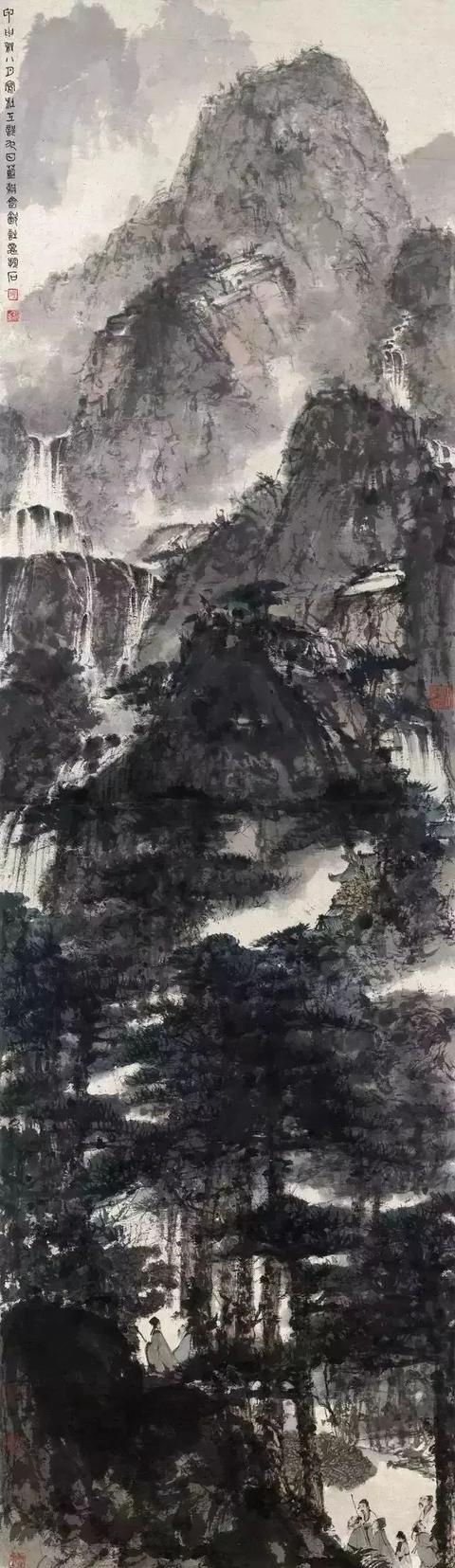 分,像八大山人的《孤禽图》,傅抱石的《二湘图》、《虎踞龙盘今胜昔》,李可染的《万山红遍》、
