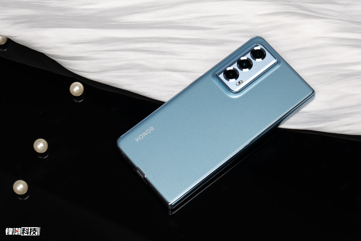 荣耀Magic Vs2 的机身采用环绕式多曲面设计,在视觉上更显美观,配合 10.7mm 的折叠态厚度,拿上手也有更舒适的握感。最重要的还是 229g 的重量,相比 V2 要轻 2g,甚至比一些旗舰的直板机都要轻。