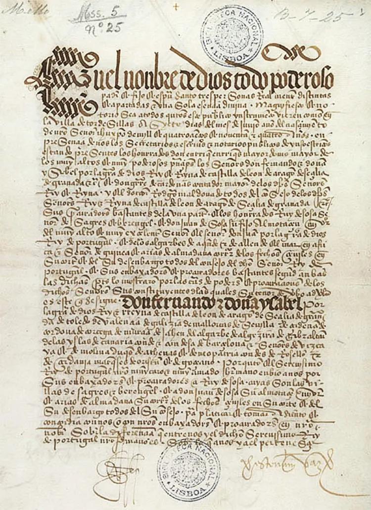 哥伦布到达美洲之后,西班牙率先获得了进入美洲大陆的机会。这打破了葡萄牙在1478年几内亚海战中建立的大西洋霸权地位,两国因此产生尖锐矛盾,几乎兵戎相见。