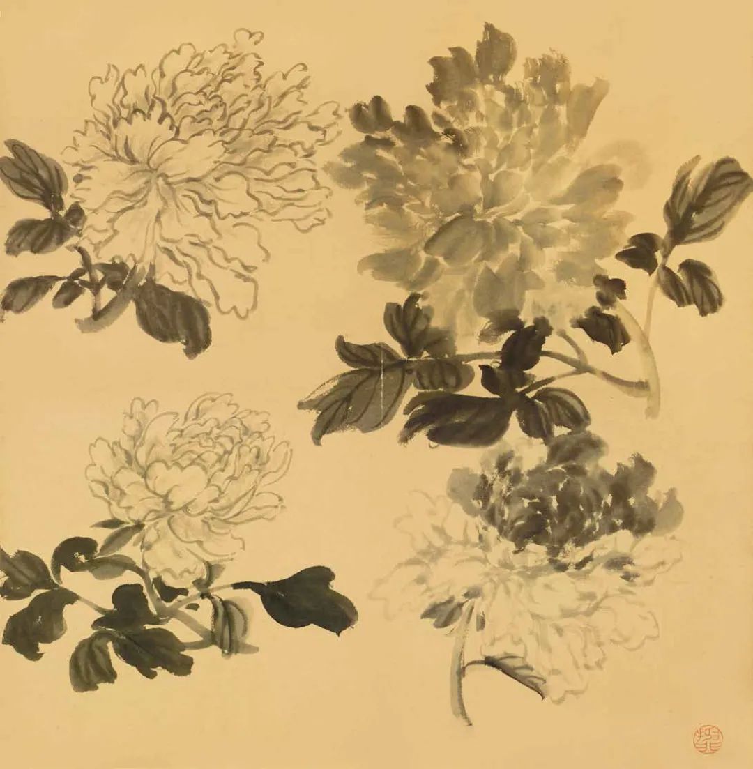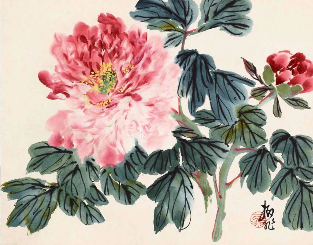 陆抑非课徒稿·牡丹欣赏